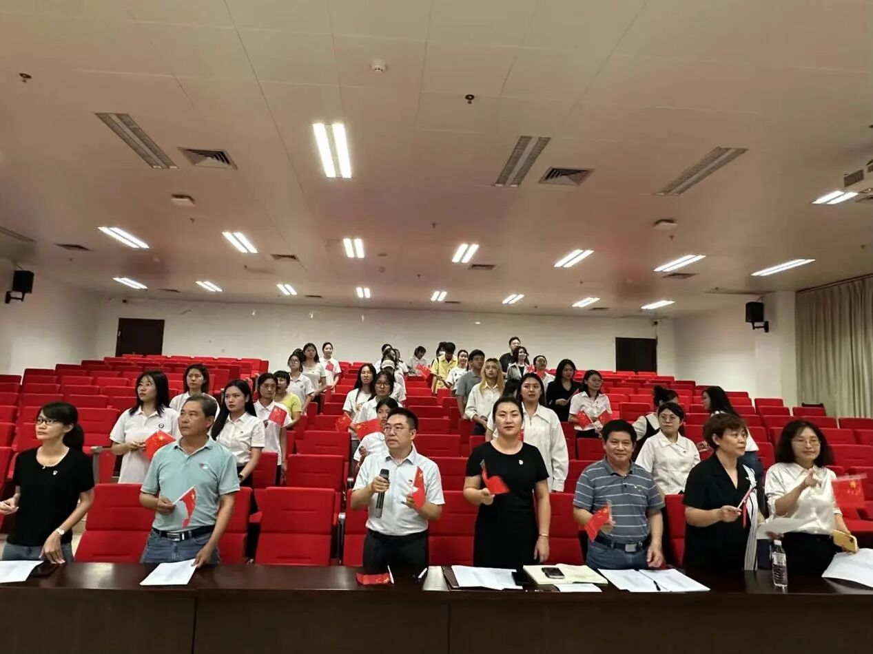 为迎接新中国75周年华诞,银健书记带领全体参会成员合唱歌曲《我的祖国》、《我和我的祖国》和《歌唱祖国》,师生以高涨的热情共同为祖国庆生。