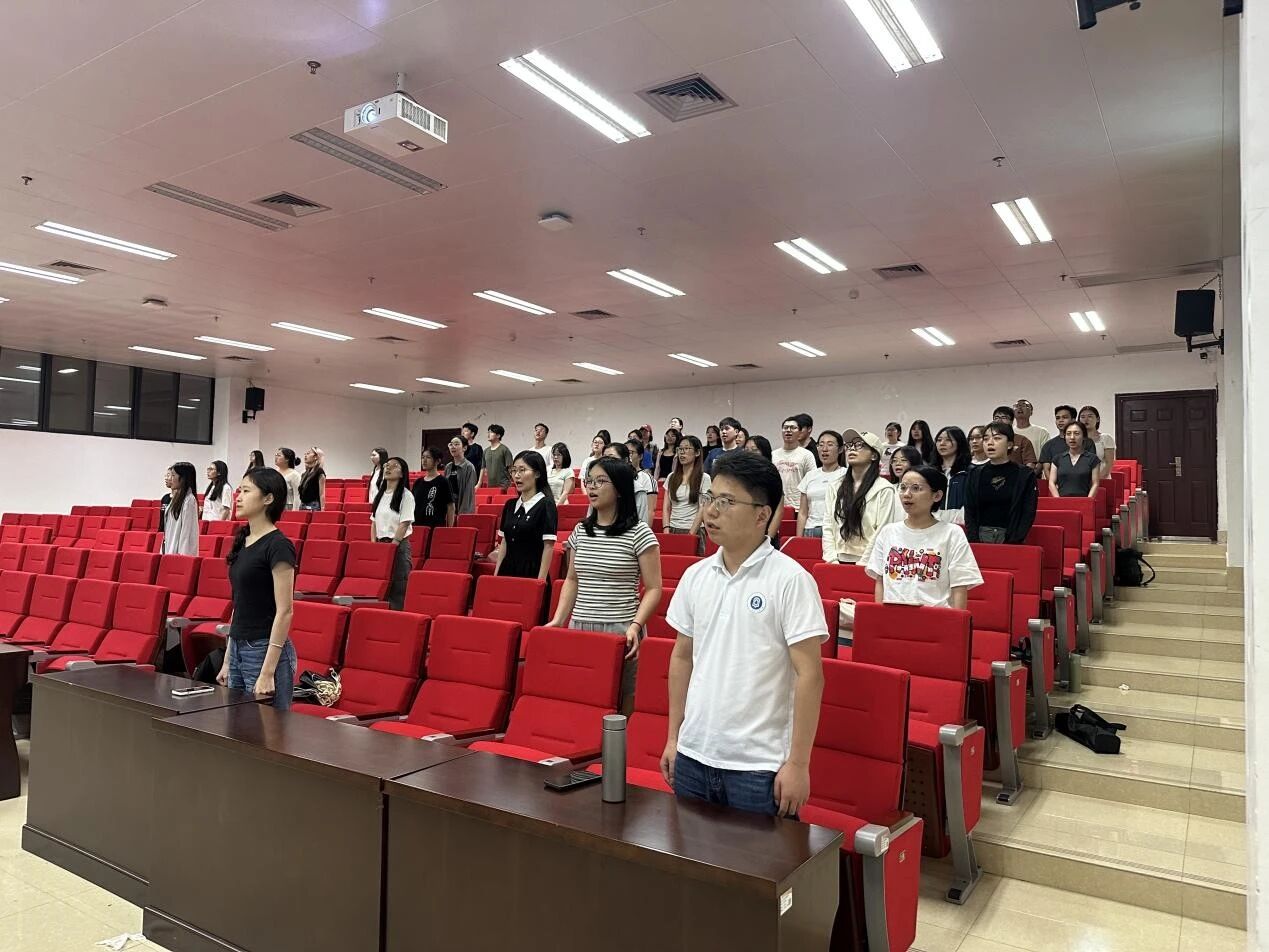 5月16日,学员观看《榜样8》专题节目,钱七虎、刘玲琍等 6 名党员的奉献事迹引发共鸣。观看后,学员围绕 “入党为什么?为党做什么?” 展开讨论并宣誓。