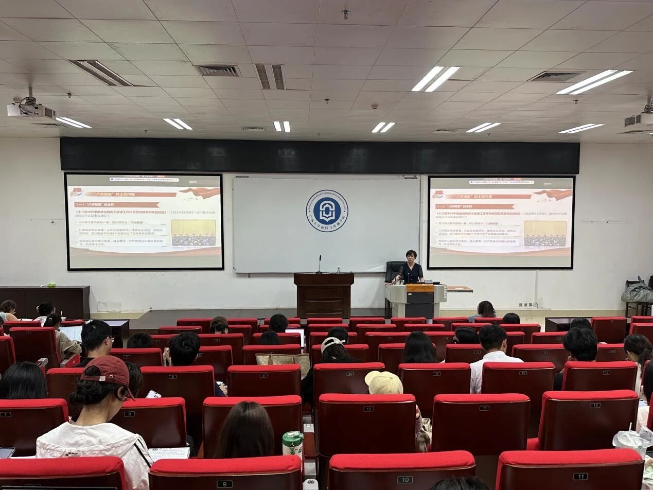 5月14日,原我院团委书记刘梦娟围绕党的作风建设及中央八项规定授课,指出党中央以中央八项规定推进全面从严治党,实现党风政风革新。她强调,党员需将中央八项规定内化为思想自觉与行动自觉。