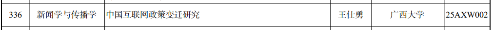 9月29日,经受理申报、通讯初评、会议评审、网上公示等各项程序,全国哲学社会科学工作办公室公布2025年国家社会科学基金年度项目立项名单,我院院长王仕勇教授申报的科研项目“中国互联网政策变迁研究”获得新闻与传播学重点项目立项。