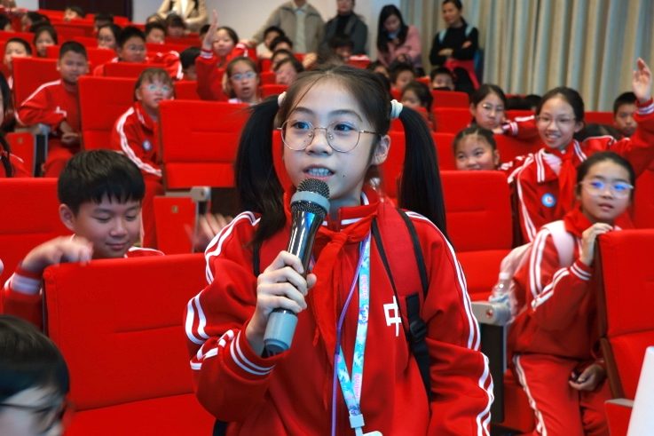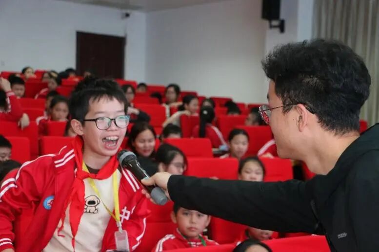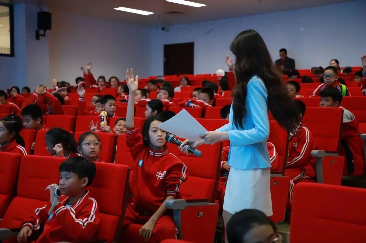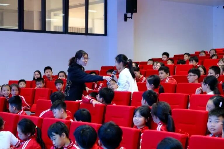 在互动交流环节,广西大学新闻与传播学院的优秀学生代表与小朋友们面对面分享大学生活与学习经验。现场气氛活跃,小学生们踊跃提问,围绕学业规划、社团活动、成长经历等话题展开深入交流。学长学姐们的耐心解答与真诚分享,不仅拉近了大学与小学的距离,也在孩子们心中播下了向往大学生活的种子。
