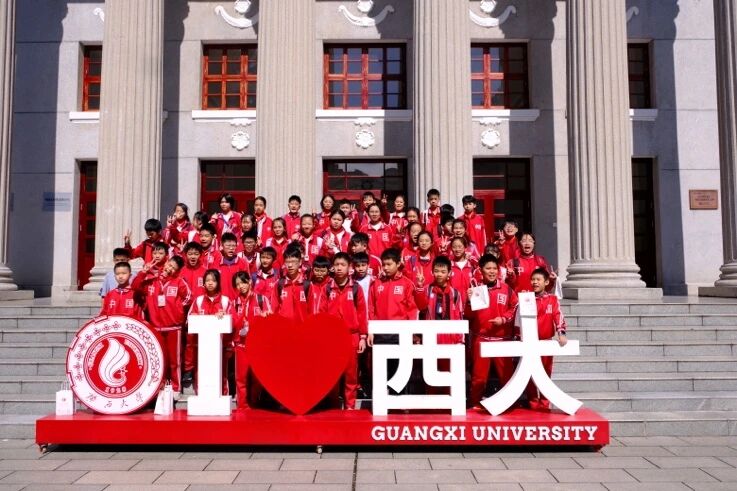 此外,同学们在志愿者的引导下,有序参观了广西大学时光广场、图书馆、崇左桥、汇学堂、大礼堂等校园标志性场所,实地感受大学浓厚的学术氛围与人文底蕴。中午时分,师生们前往食堂用餐,体验大学集体生活,并在过程中践行“光盘行动”,培养节俭美德与社会责任感。