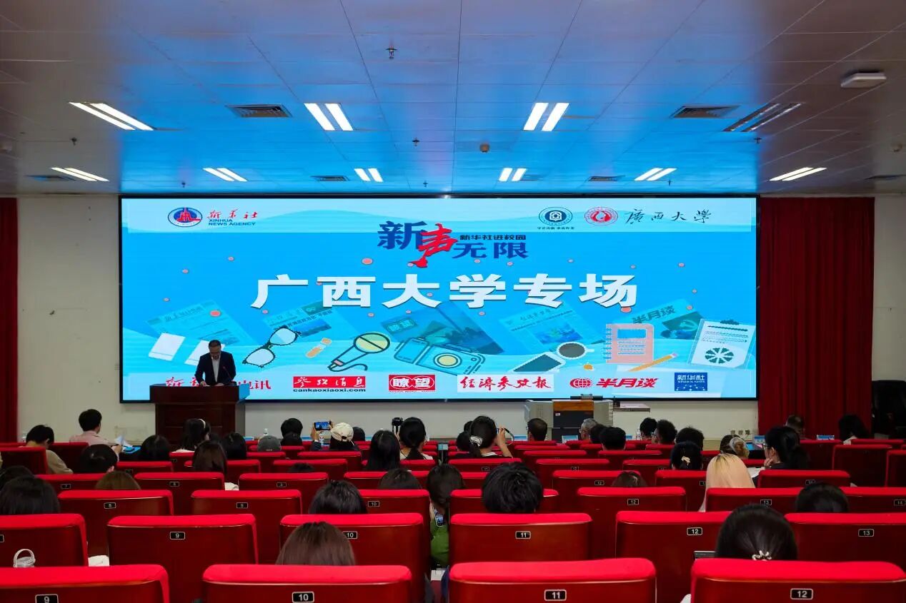 据悉,“新华社进校园”活动自2021年启动以来,已走进全国1100余所高校,吸引超过1.4亿人次参与。此次 “新声无限 ——2025 年新华社进校园” 活动的举办,不仅为广西大学新闻传播教育注入了新活力,更搭建了校媒协同育人的坚实平台,助力青年学子在专业成长道路上坚定方向、勇毅前行。