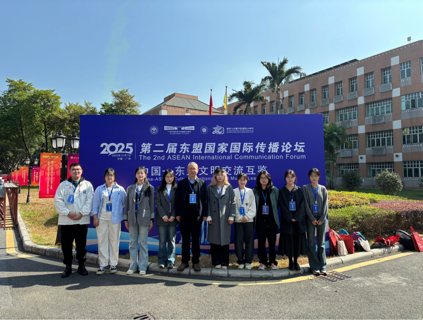 2025年12月7日,第二届东盟国家国际传播论坛在广东外语外贸大学白云山校区举行。本次研讨会由广东外语外贸大学主办,以“中国—东盟文明交流互鉴”为主题。来自国际传播和区域国别研究领域的专家学者和业界精英,围绕新时代面向东盟的国际传播理论与实践展开了深入交流与研讨。学院王仕勇教授及9名硕士研究生参会,多维度分享学术研究成果。
