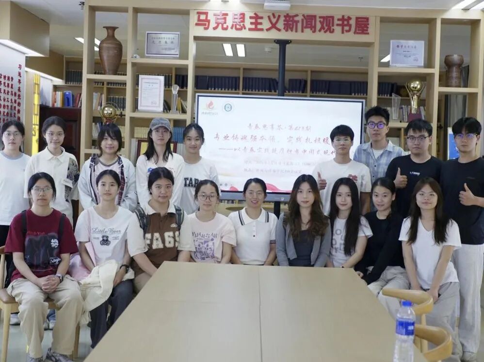 3月31日,我院2026年寒假“返家乡”社会实践经验分享会在马克思主义新闻观书屋顺利举行。院团委书记何湘桂老师全面总结本次实践工作并作专题汇报,播音251班邓媛元、新闻251班陈雨冰两位同学分别围绕返乡招生宣讲、非遗赋能乡村振兴分享实践故事与成长感悟。学院各年级学生代表齐聚现场,共学共悟。