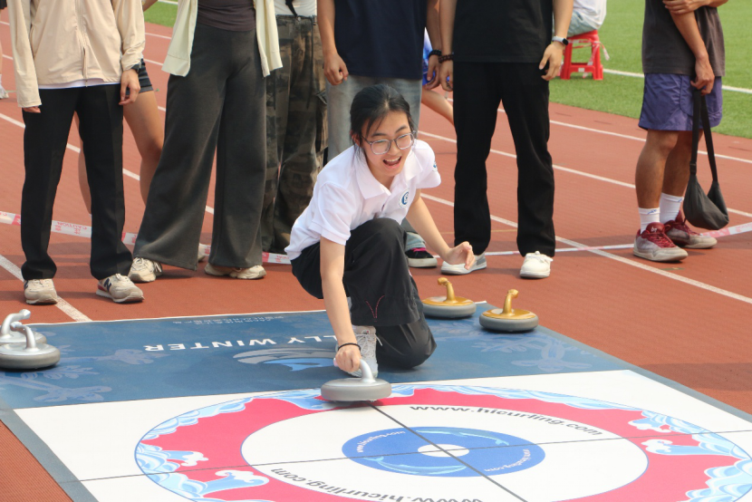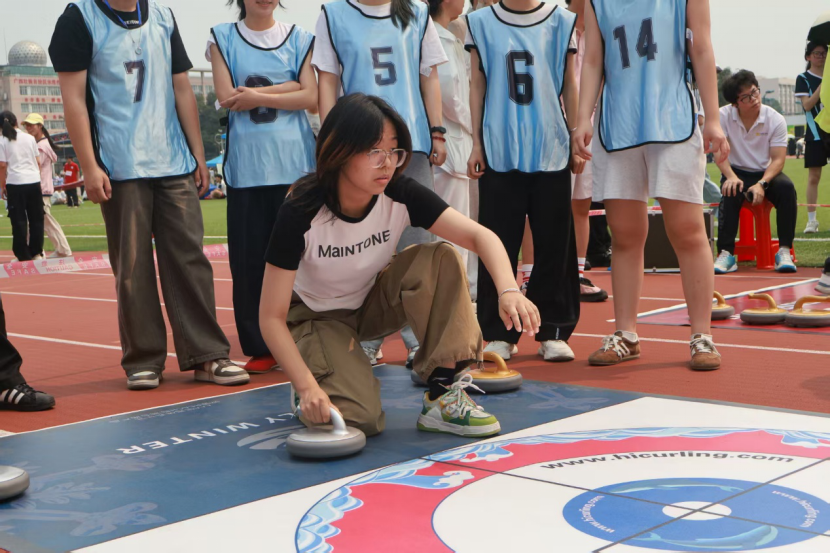 陆地冰壶赛场,我院参赛队员凝神聚力、精准投掷,在一次次投壶博弈中默契配合、灵活布局,尽显团队协作的力量。