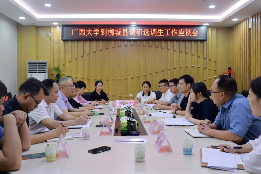 韦慰举部长对广西大学一行的到来表示热烈欢迎,回顾了双方在共建科研平台、联合技术攻关等方面的丰硕成果,并指出,柳城县1938名公务员中,广西大学毕业生达170余名,已成为当地干部队伍的中坚力量。目前,柳城县拥有选调生45人,队伍结构呈现年轻化、高学历的特点,其中90后占86.7%,全日制研究生以上学历占11.1%。他重点分享了柳城县在选调生“选、育、用、管”全链条培养上的系统做法,包括构建三级管理机制、实施“1+N”导师帮带、安排多岗交流锻炼、强化“一人一档”考核等。他也坦言,柳城县在卫生、教育及文科领域的人才需求迫切,希望广西大学能输送更多优秀学子,助力柳城发展。